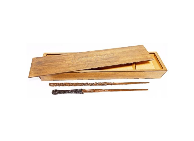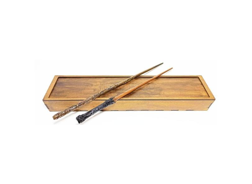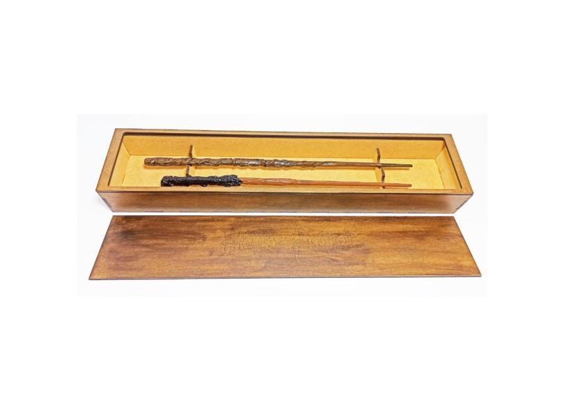Varinha Harry Potter Caixa Box MDF Deluxe com 2 Varinhas - Modelo Harry Potter e Hermione Rústica