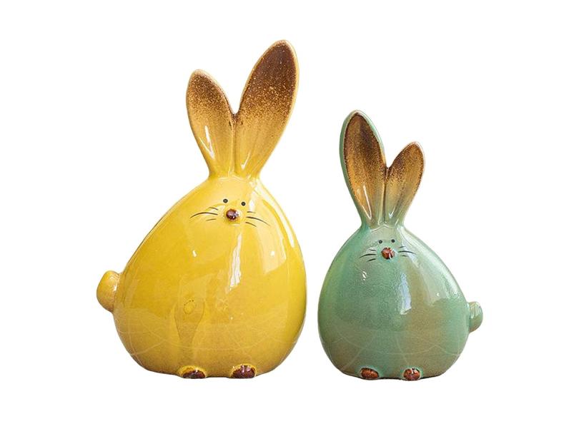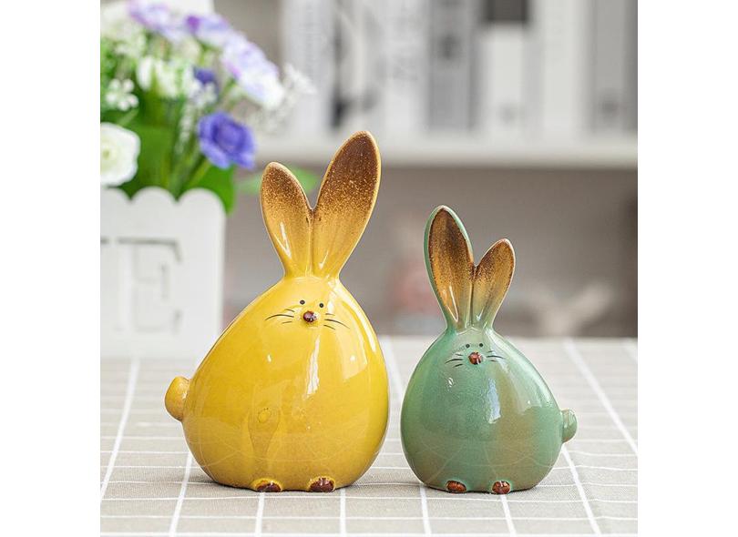 2 pçs/set Cerâmica Escultura de Coelho para a Decoração do Quarto, artesanal Escultura de Arte para Sala de estar Corredor Quarto Console de