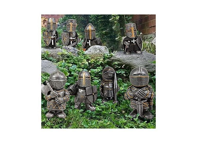 Cavaleiro Gnomos, Cavaleiro Gnomo em Armadura Completa Segurando Espada Jardim, Cavaleiro Guerreiro Jardim, Estátua de Resina Ornamento de Escultura Artesanato para Jardim, Quintal, Pátio, 4,532 cm, 1/8 peça