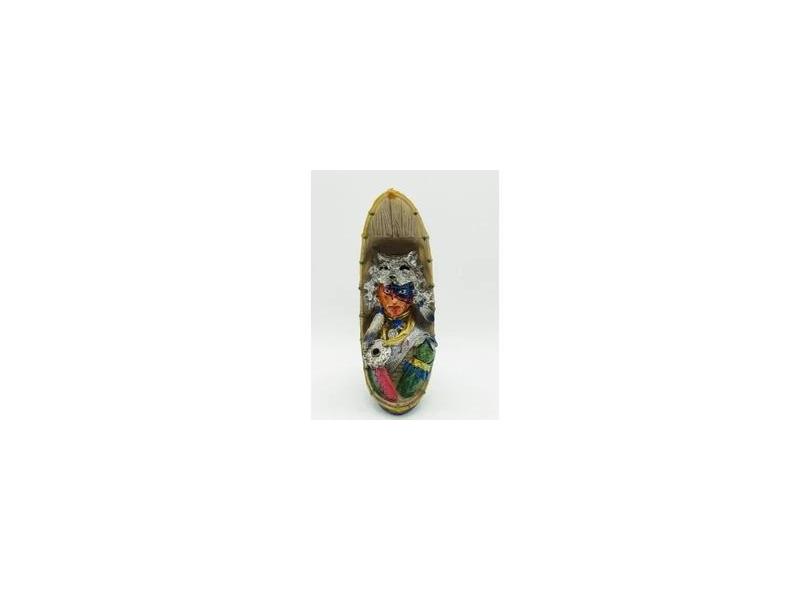 Enfeite Totem Resina Indio Americano Estátua 17cm Canoa Lobo