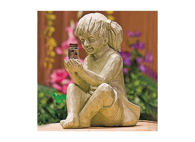 Estátua de jardim infantil com vaga-lume solar frasco de resina estátua de canteiro de flores caprichoso jardim decoração de escultura ao ar livre