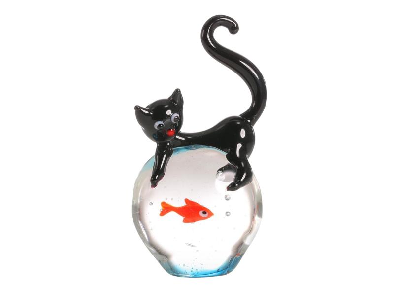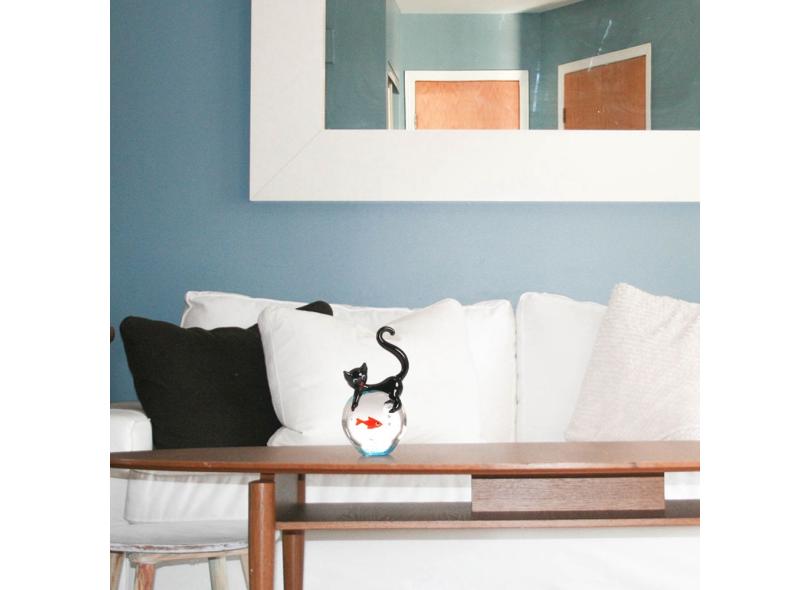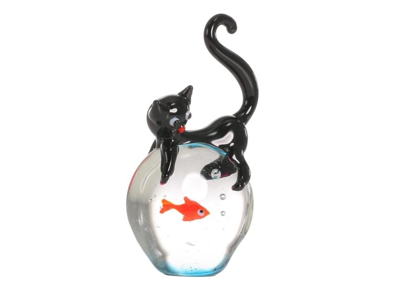 Estatueta De Cristal De Gato E Peixe Ornamento De Estatueta De Animais Em Miniatura Artesanato