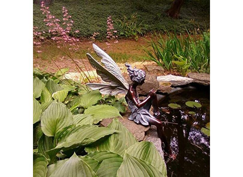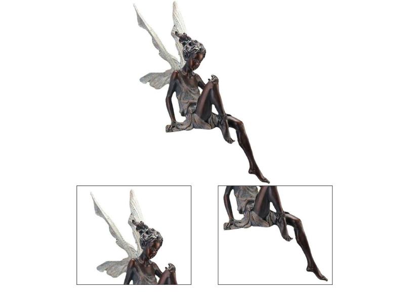Estatuetas de estátua de fada da flor com asas Ornamento de jardim ao ar livre em resina artesanal