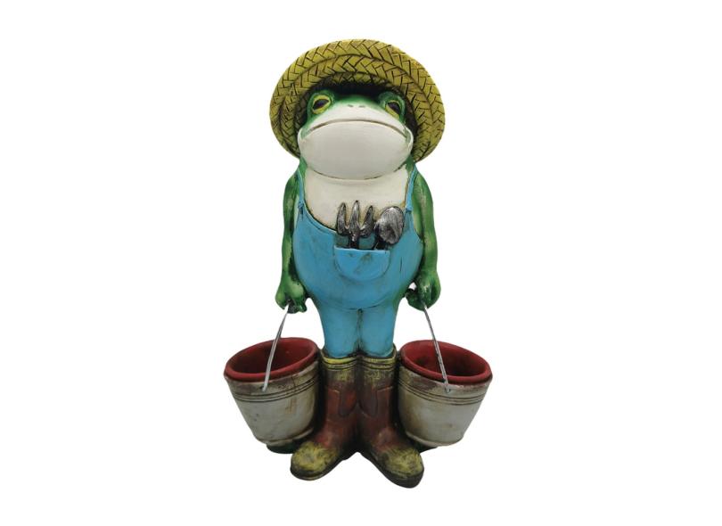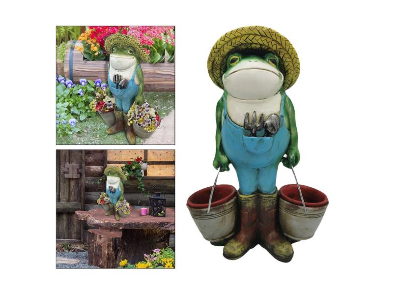 Estilo Sapo Estátua de Jardineiro com Chapéu de Palha do vintage Resina Vaso Decoração de Jardim em Miniatura