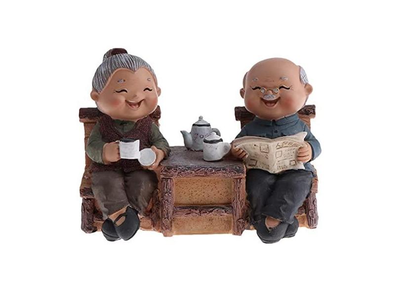 GDEVNSL Estatuetas coloridas para casais de idosos de resina Craft Decoração de jardim Escultura Ornamento de gramado – Jogando xadrez, conforme descrito