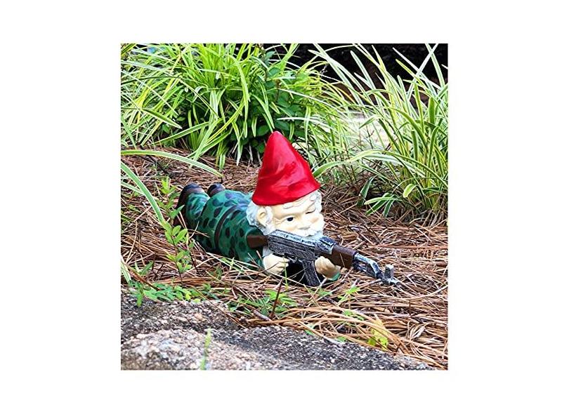 Hinbest Estátua engraçada de gnomo de jardim do exército com arma, enfeite de mesa de casa, escultura de figura para decoração de quintal em casa