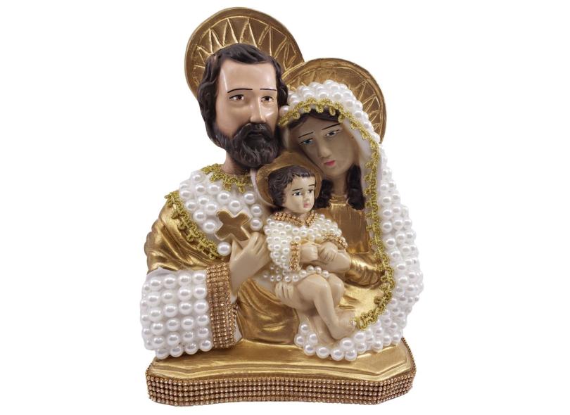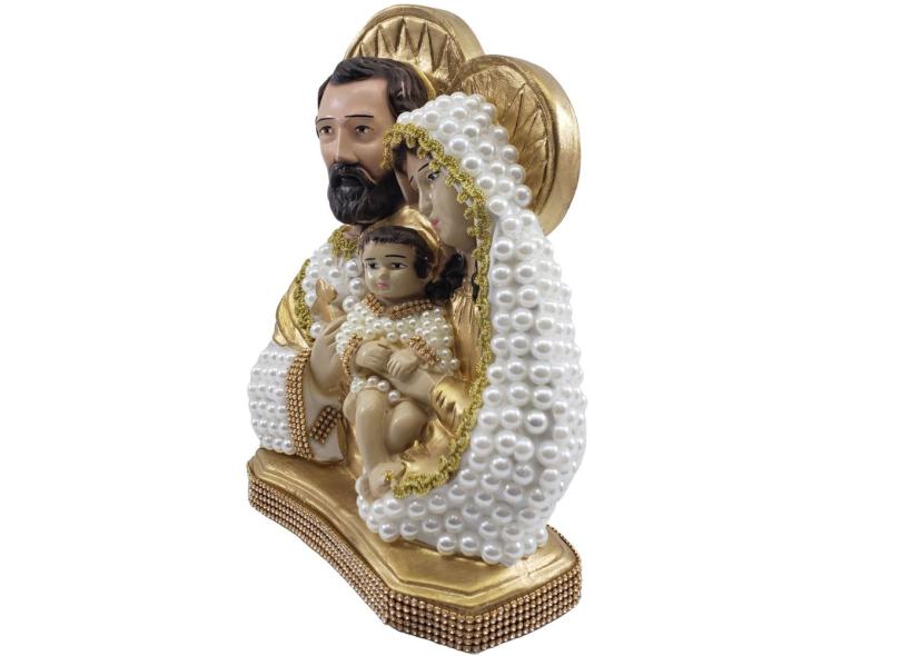Imagem Busto Sagrada Família Gesso 30 cm Com Pérolas e Strass