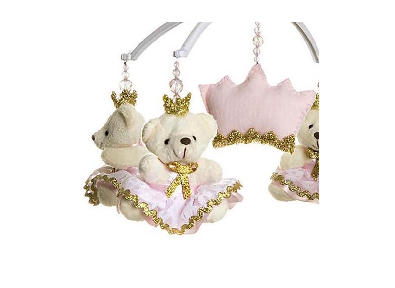 Móbile Musical Ursinha Princesa Rosa Quarto Bebê Menina - Potinho De M