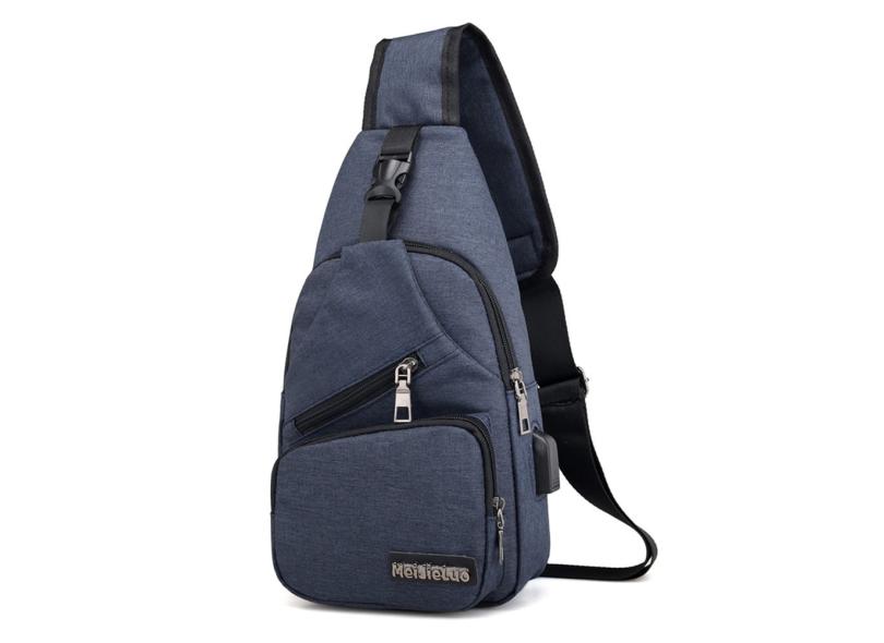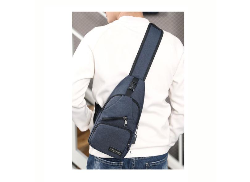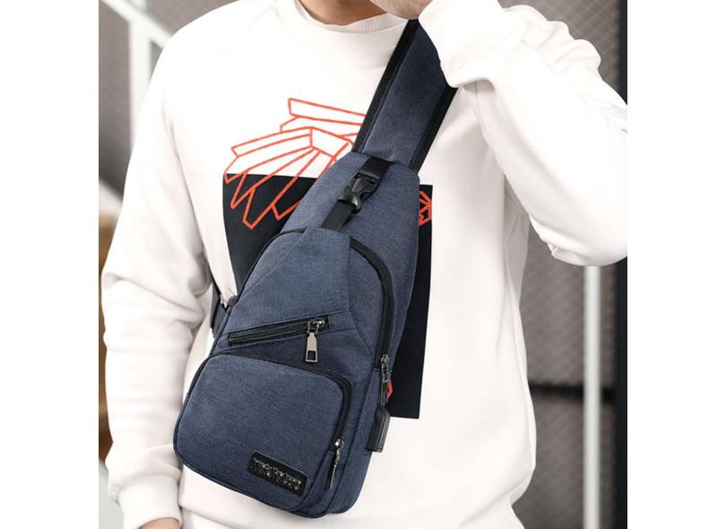 Bag Sling com Porta USB Crossbody Canvas Peito Bag Mochila Canvas