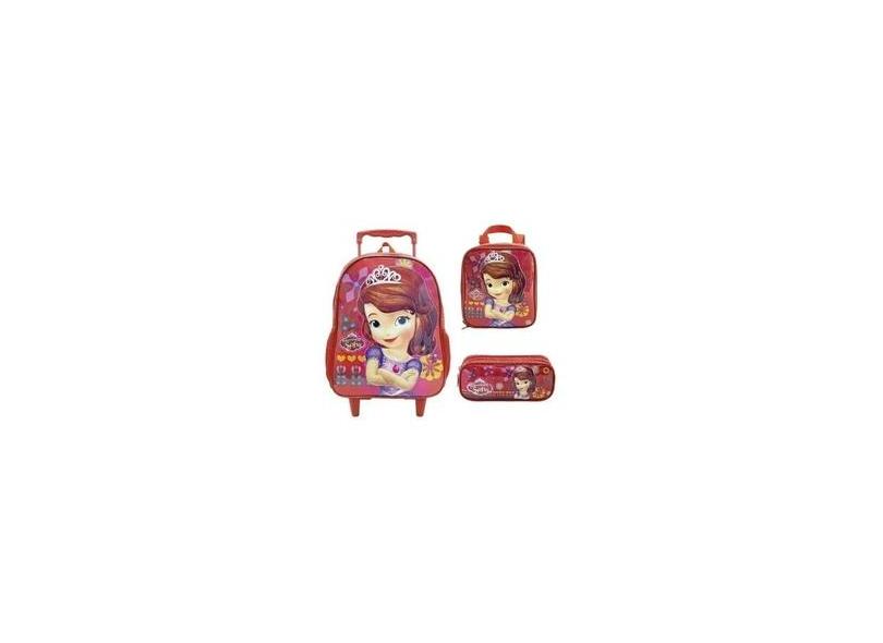 Kit Mochila Infantil Princesa Sofia Rodinha Brilho Xeryus G