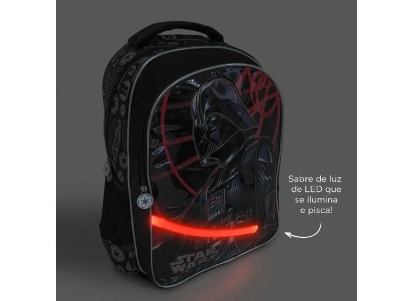 Mochila Escolar Costas Grande Acende Luz Led Infantil Star Wars Darth Vader Sabre Costas G