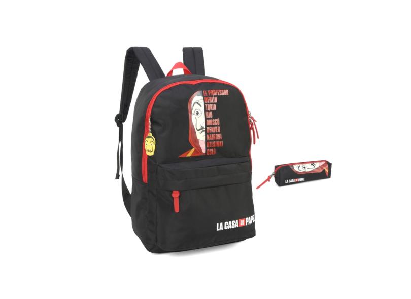 Mochila La Casa de Papel Notebook Juvenil Escolar com Estojo