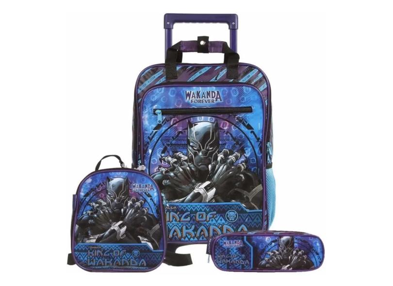 Mochila Pantera Negra Infantil Escolar Lancheira E Estojo