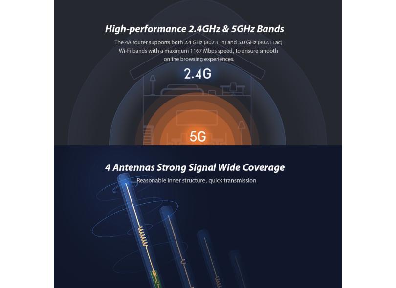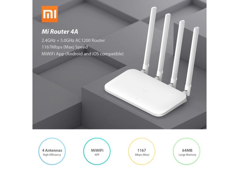 Xiaomi Mi Router 4A Wireless WiFi 2.4GHz 5.0GHz Dual Band WiFi 1167Mbps Repetidor 4 Antenas Através parede 64MB de memória de rede Extender app Controle