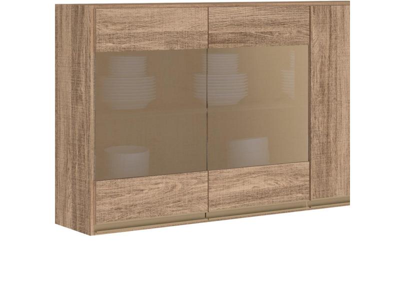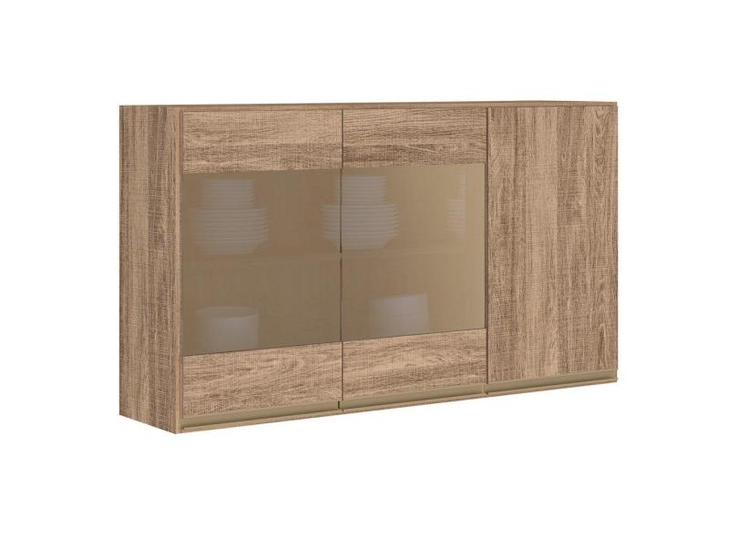 Armário Aéreo 120cm 3 Portas MDF Detalhe Vidro Reflecta Kali Premium 3042.14 Carvalho Rústico - Nicioli