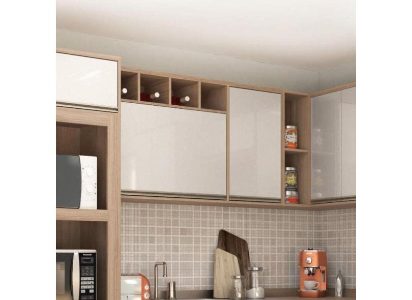 Armário Aéreo De Cozinha 2 Portas 1 Basculante Nicho Superior 120Cm Selfie Mel Luciane Móveis Vanilla/Pérola Off