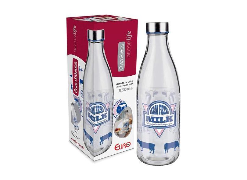 Garrafa De Leite Vidro 950ml Decorada Classica Euro Home