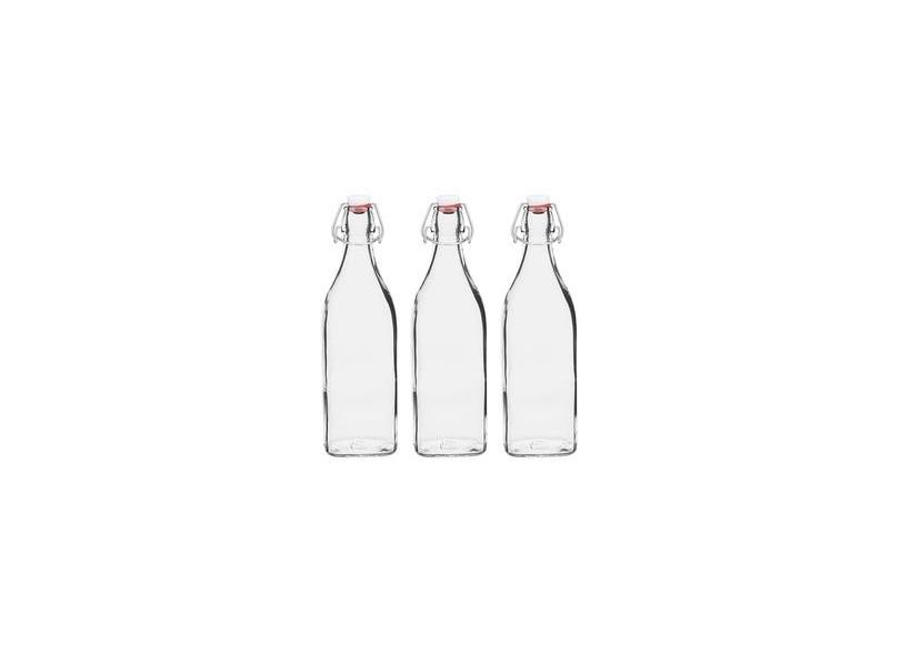 Kit 3 Garrafa Vidro Italiana 1 Litro Hermética Swing Bebidas