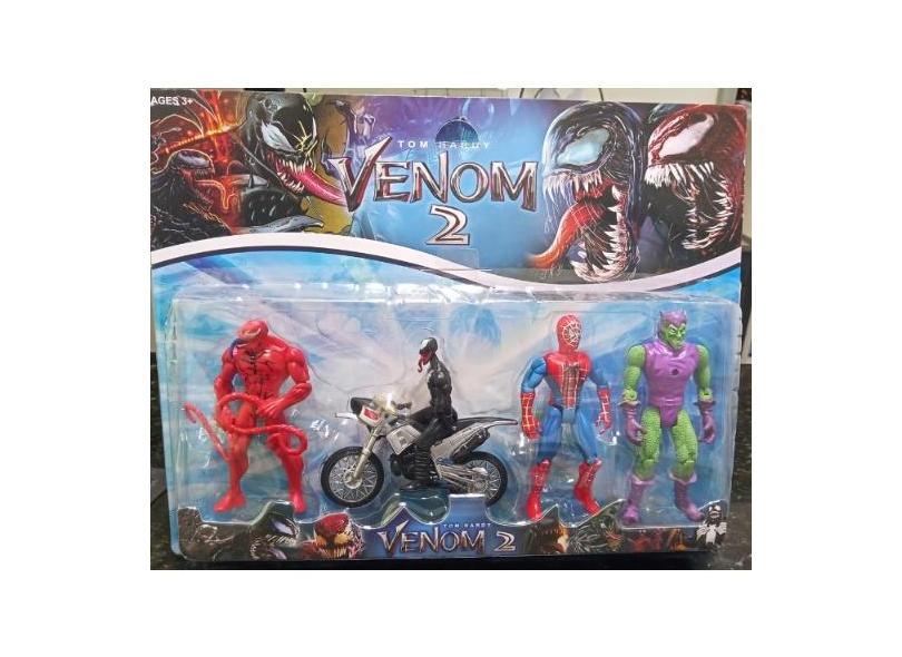 Brinquedo Infantil Kit 4 Bonecos Homem Aranha e Inimigos Venom com moto.