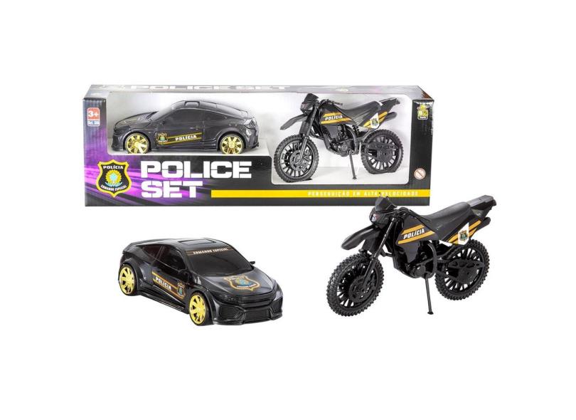 Carrinho E Moto Policial Brinquedo Police Set Viatura - Bs Toys