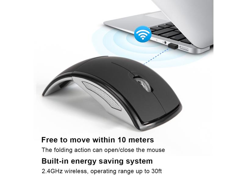 Mouse sem fio, mouse sem fio dobrável ergonômico Arc Mouse com receptor USB para laptop Sistema integrado de economia de energia Design ergonômi