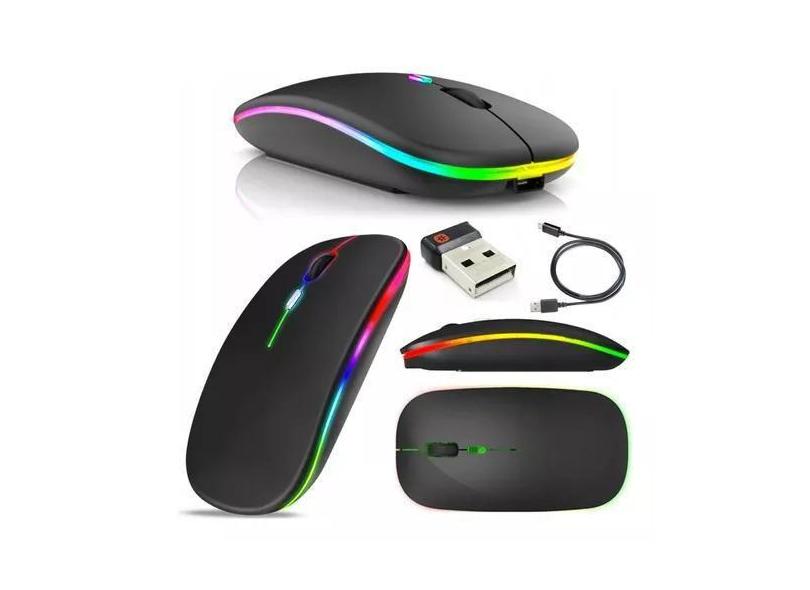 Mouse Sem Fio Wireless Recarregavel Led Rgb 2,4GHz Bluetooth Bateria I