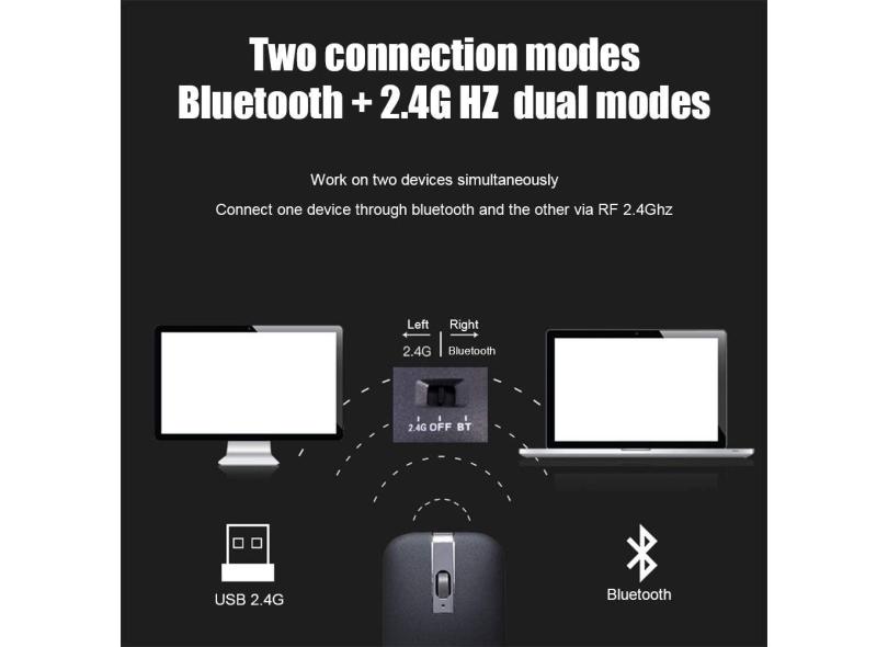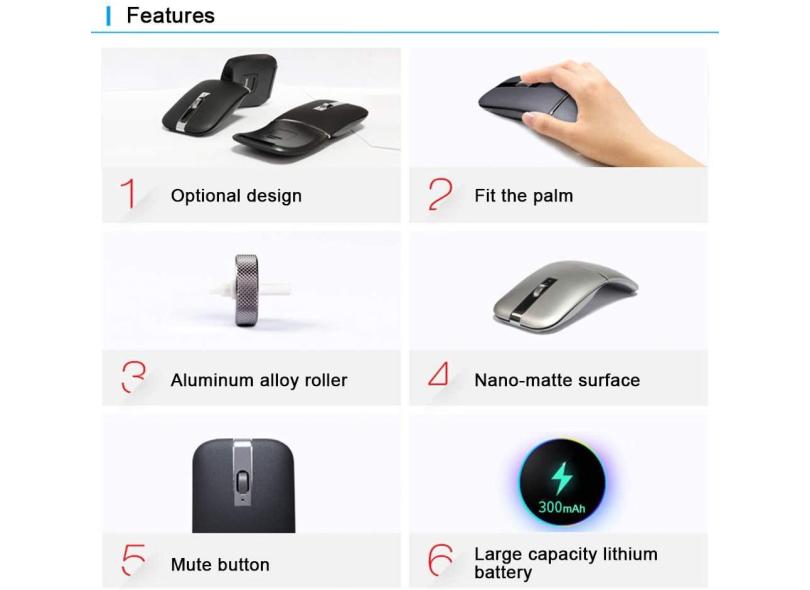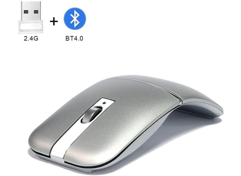 NORMIA RITA Arco Dobrável Mouse sem fio Clique Bluetooth 2.4GHz Dual Modes Mouse Curvo portátil para casa, escritório, viagem (prata)