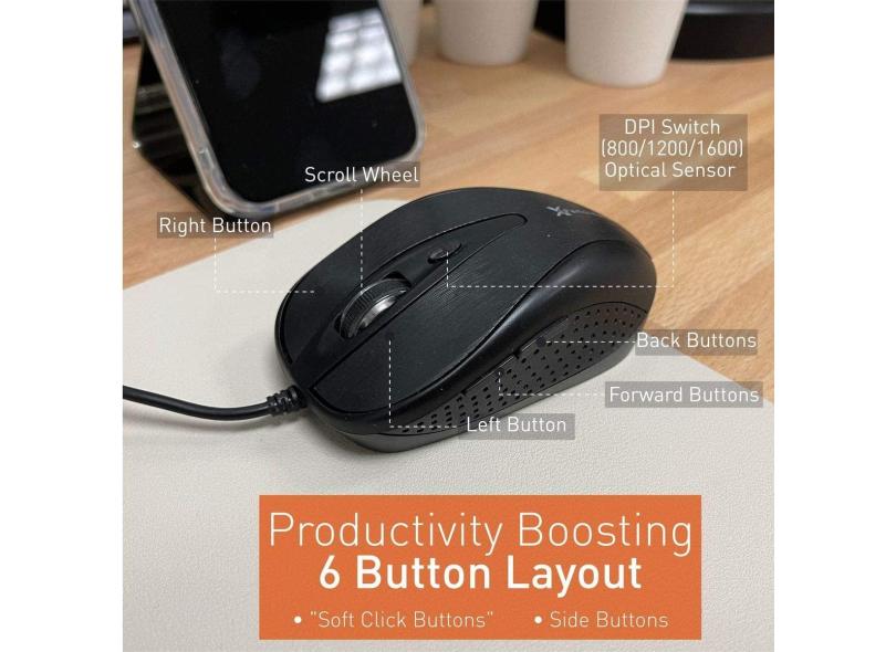 X9 Performance USB Mouse com fio para laptop - (DPI de alta resolução) 6 botão com botões laterais e até 3200 DPI - Confortável Soft Click USB Mouse para Chromebook e PC/Mac - Matte Black