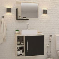 Armário De Banheiro Com Cuba E Espelho 1 Porta 2 Prateleiras Preto Oni