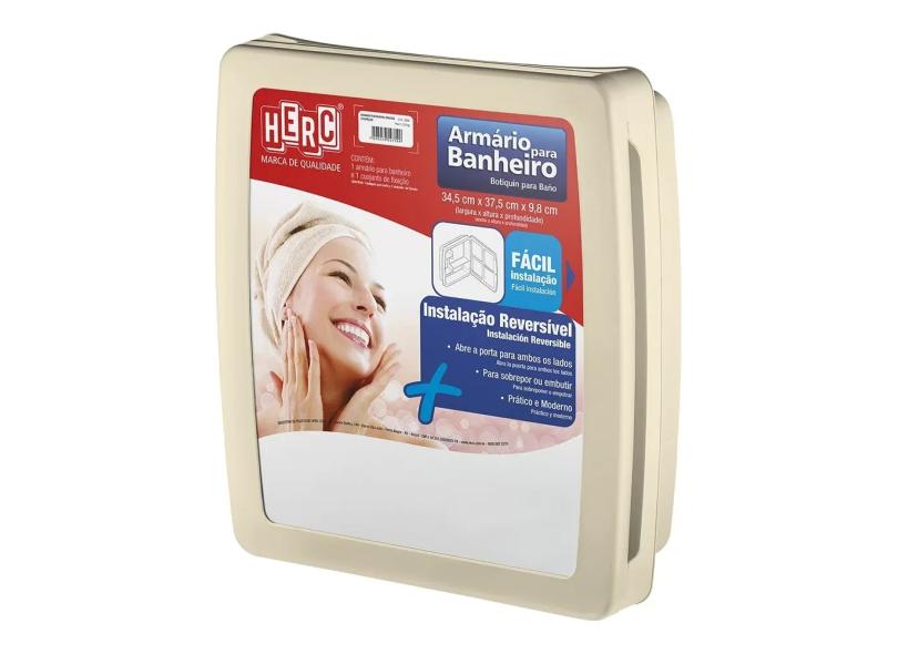 Armário para Banheiro de Plástico Bege com Espelho Herc