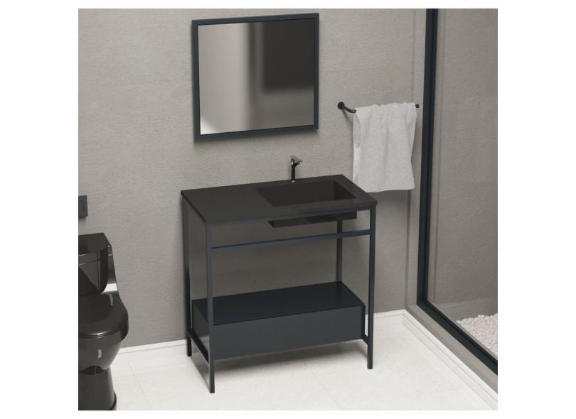 Gabinete Banheiro Ferro Iron Black C/ Gaveteiro 80x45cm