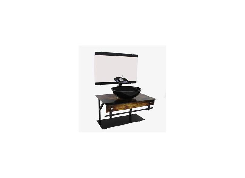 Gabinete De Vidro 60Cm Apx Com Cuba Redonda - Madeira Rústica