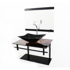 O menor preço encontrado no Brasil para Gabinete De Vidro 60Cm Com Cuba Retangular - Madeira Rústica atualmente é R$ 550,39.