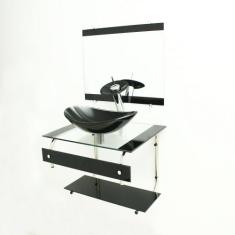 Gabinete De Vidro 60Cm Inox Com Cuba Oval