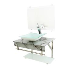 Gabinete De Vidro 60Cm Iqx Inox Com Cuba Quadrada - Mármore