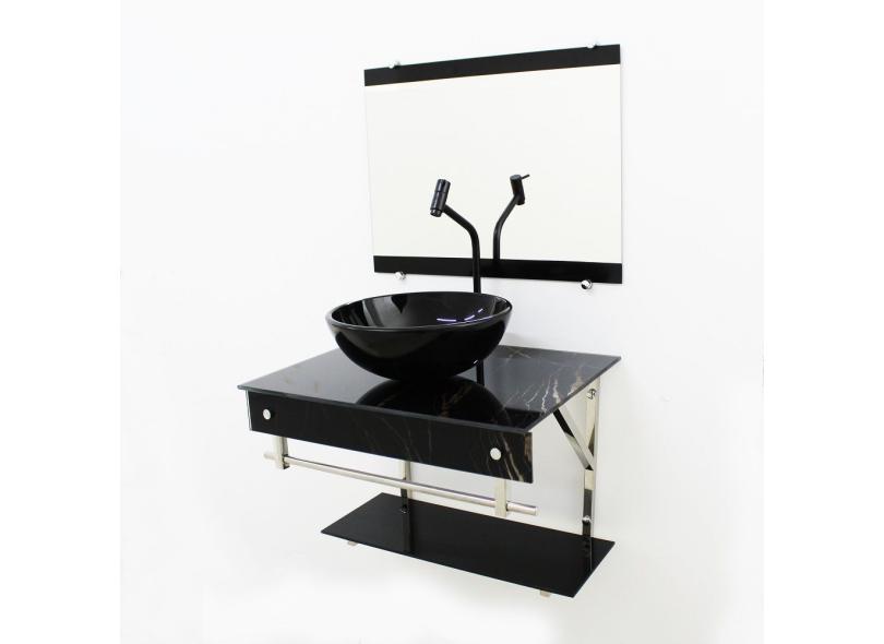 Gabinete De Vidro 60Cm Iqx Inox Com Cuba Redonda - Mármore