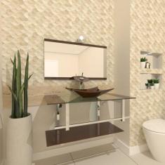 Gabinete De Vidro 80Cm Inox Com Cuba Retangular Marrom