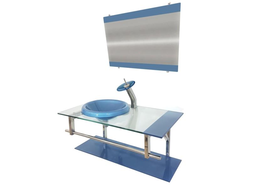Gabinete De Vidro 90Cm Iq Inox Com Cuba Chapéu Redonda -