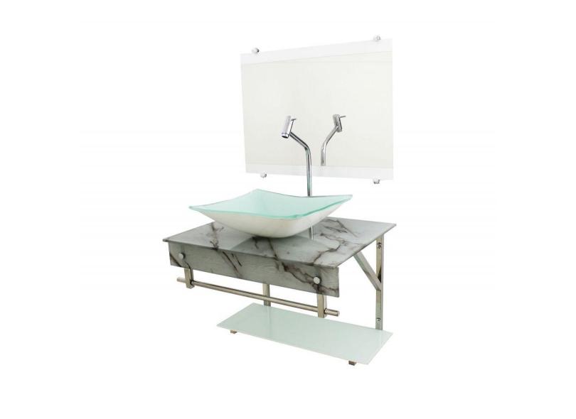 Gabinete De Vidro Inox Com Cuba Retangular Mármore