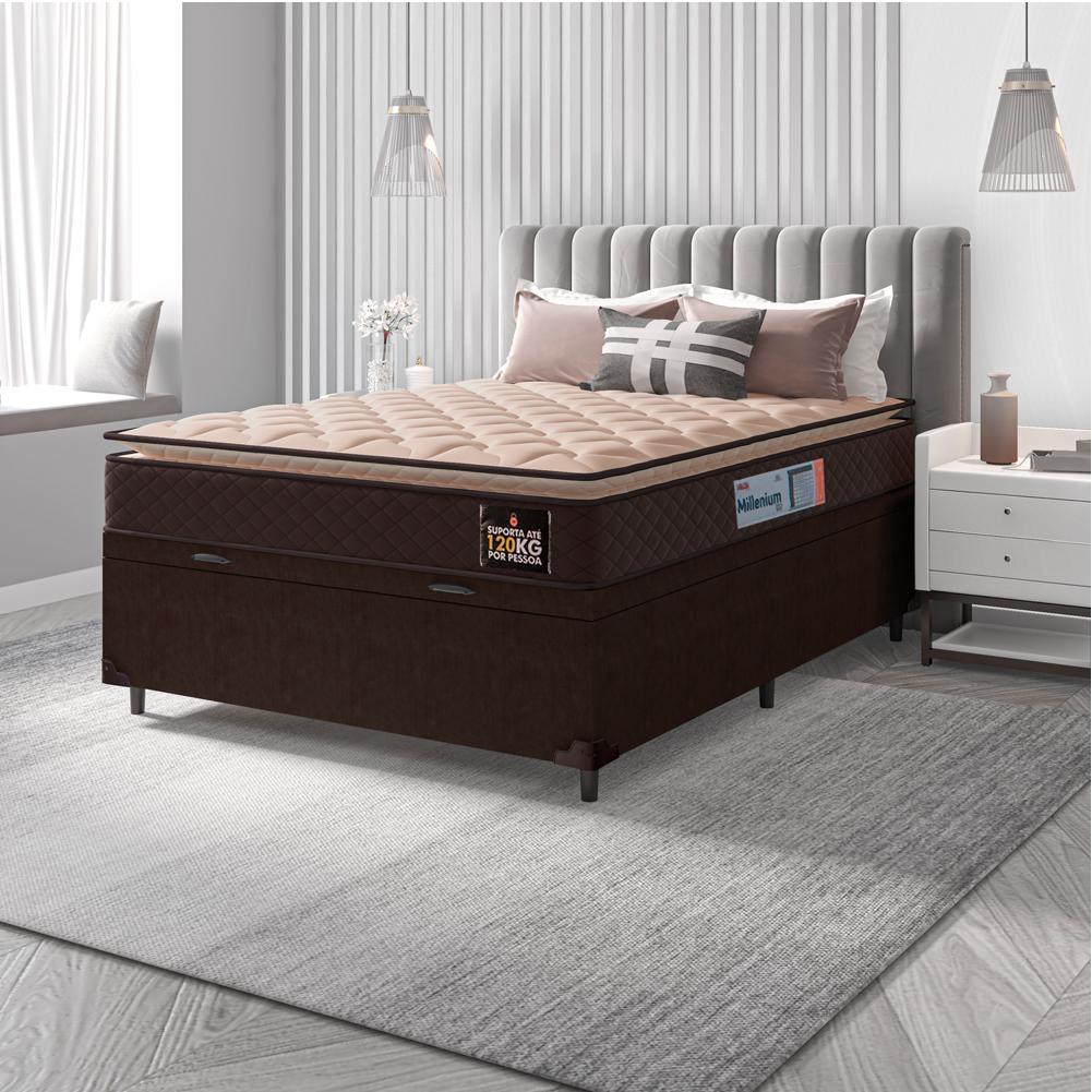 Detalhes do produto Cama Box Baú Casal Colchão Espuma D33 Pillow Top Millenium 138x188x60cm Marrom Hellen - Suporta até