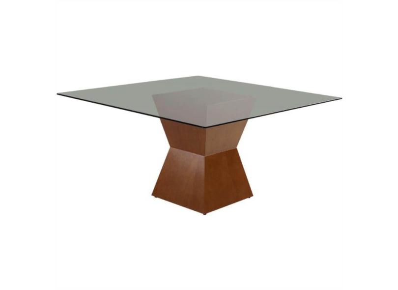 Mesa de Jantar Quadrada 150X150Cm Pirâmide Vidro e Capuccino
