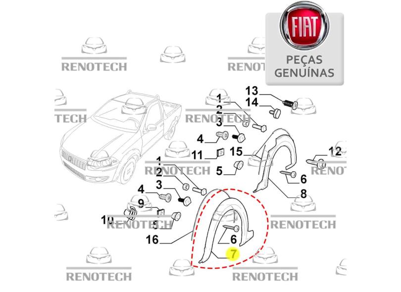 100208720 - MOLDURA DO PARALAMA DIANTEIRO - LADO ESQUERDO - FIAT STRADA - DE 2013 À 2020