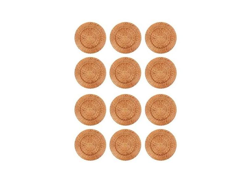 Kit 12 Sousplats Redondos em Rattan e Bambu 32cm Vietnã Artesanal Rústico Mesa Posta