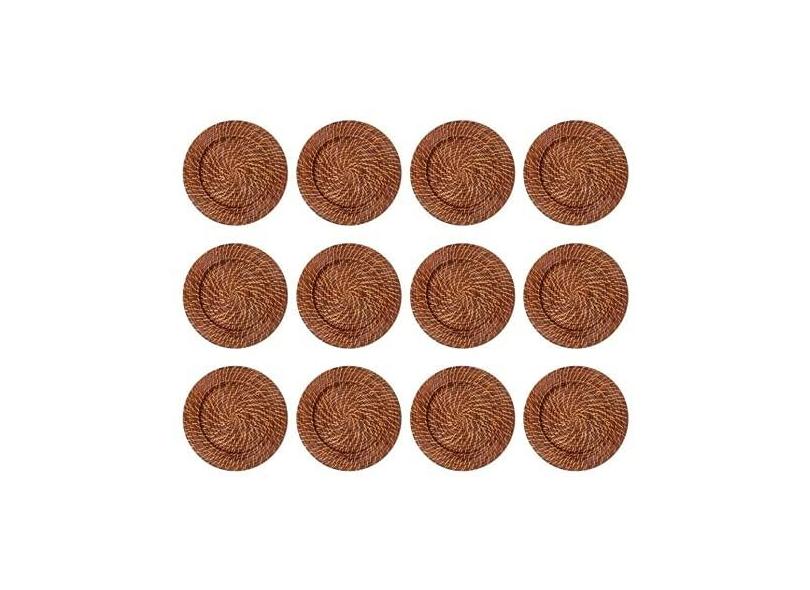 Kit 12 Sousplats Redondos em Rattan e Bambu Marrom Escuro 32cm Artesanal Rústico Mesa Posta