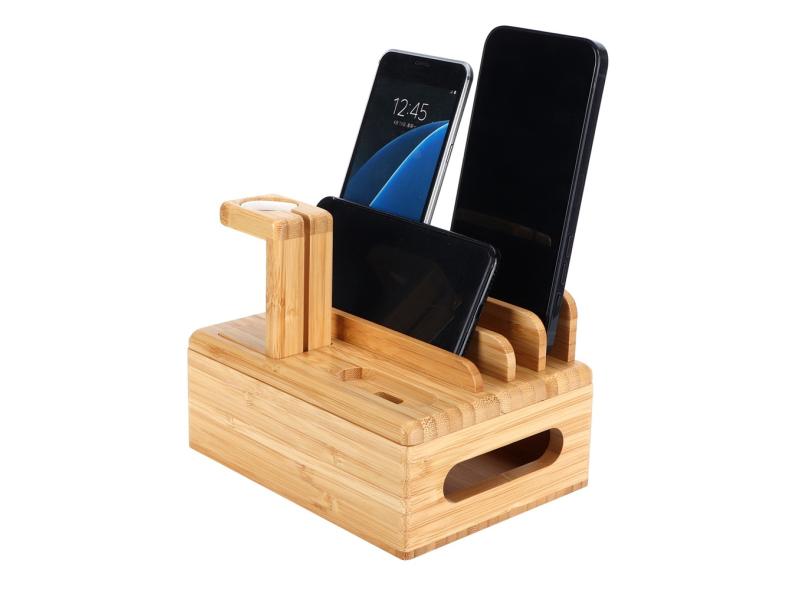 Suporte de organizador de dispositivo de bambu para celular tablet suporte para relógio caixa de armazenamento