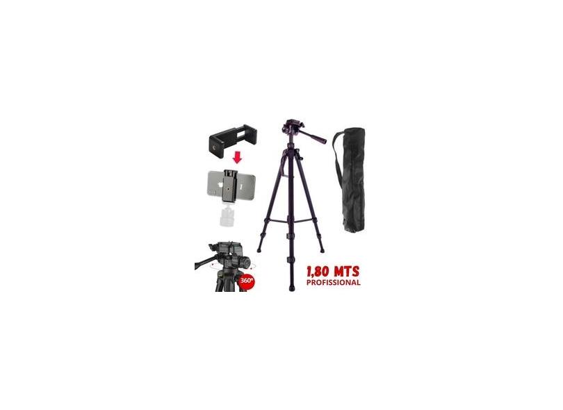 Tripé Fotográfico Profissional 1,80m Black Suporte Câmera Celular Foto Vídeos