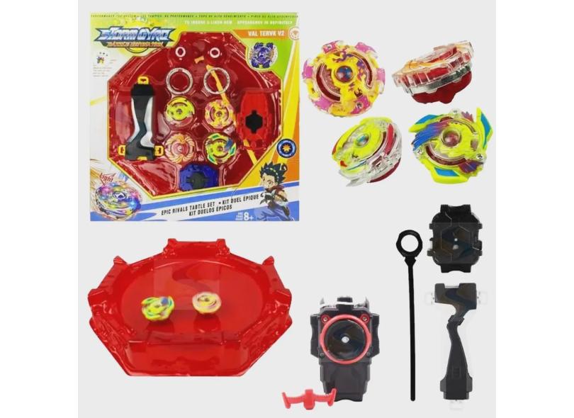 Beyblade 4 In 2 Com Luz + 4 Beyblade + 2 Lançadores Arena