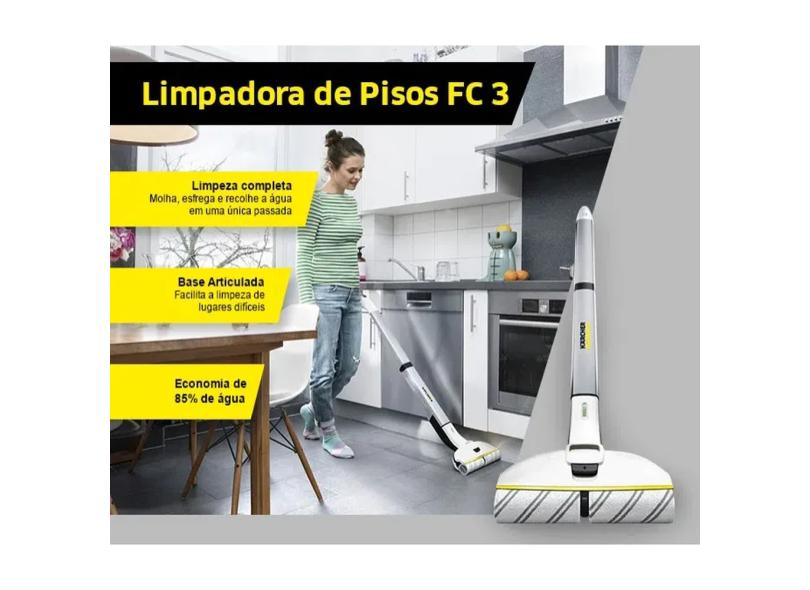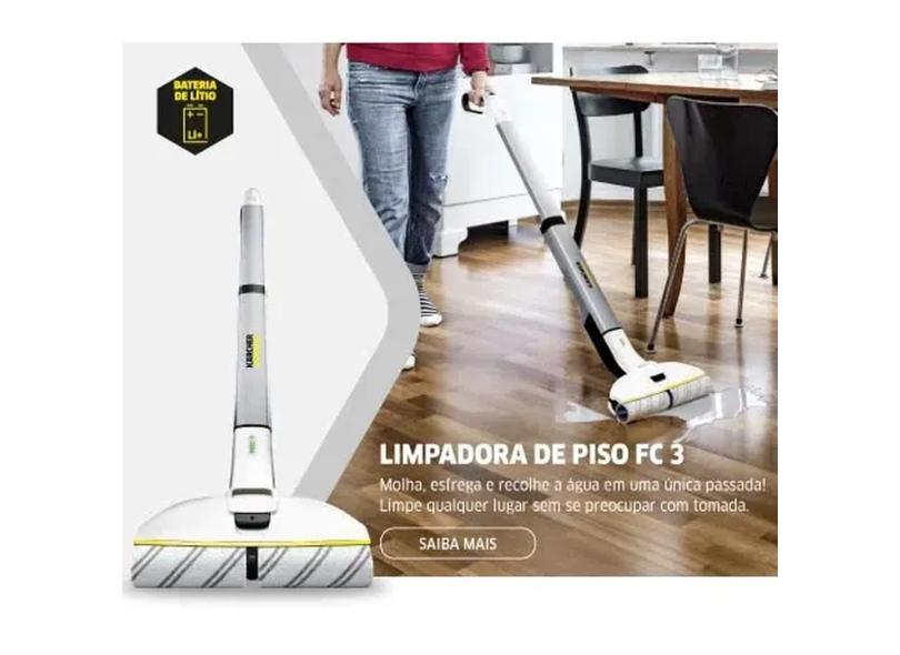 Limpadora de Pisos Karcher FC 3 - Bateria de Lítio. Molha, esfrega e recolhe a água em uma única passada.
