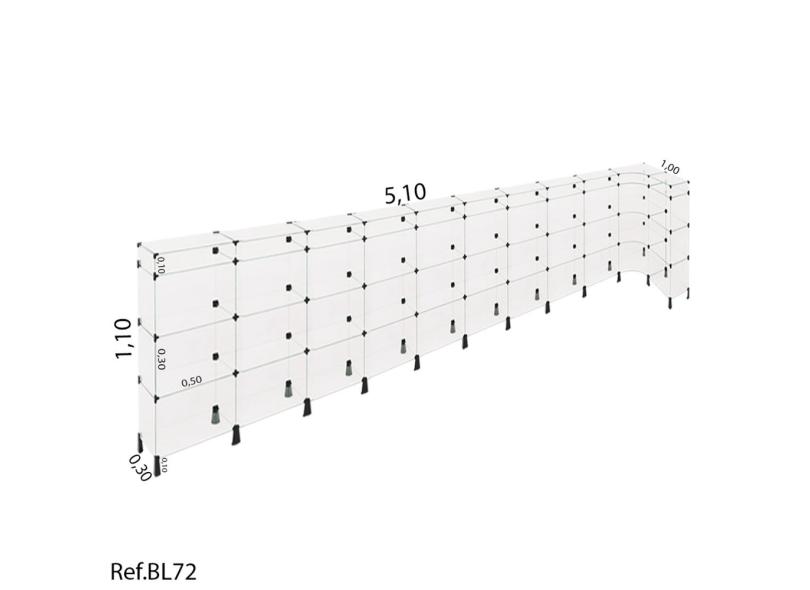Balcão L em vidro temperado - 5,10 x 1,10 x 0,30