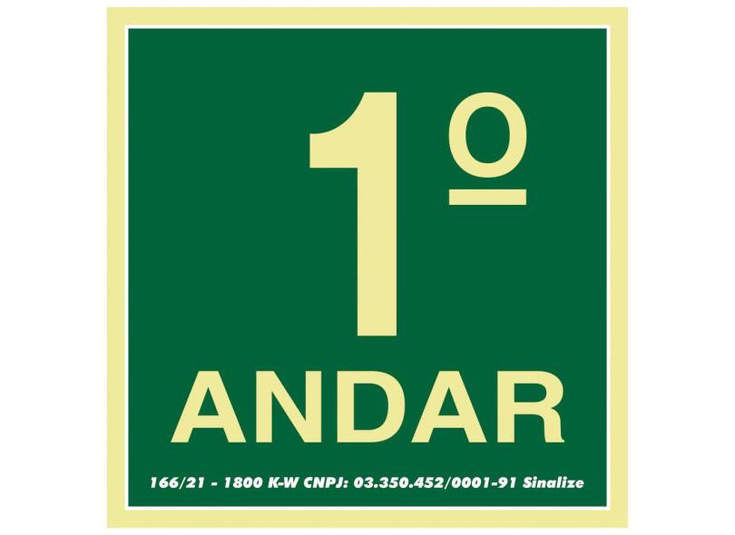 Placa em PVC Fotoluminescente 15x15cm Rota de Fuga 1º ANDAR Ref. 350AI